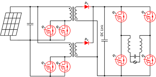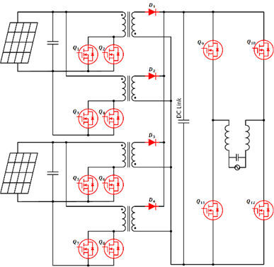 微型逆變器主要應(yīng)用在300 ~3000W的的光伏并網(wǎng)系統(tǒng)中,通常微型逆變器的數(shù)量與光伏組件數(shù)量相同,每一組件的交直流變換和最大功率跟蹤功能單獨進行,當某塊電池板損壞或被遮擋的情況下,不影響其他逆變器的正常工作,可即插即用,能夠根據(jù)用于需求進行安裝擴展。